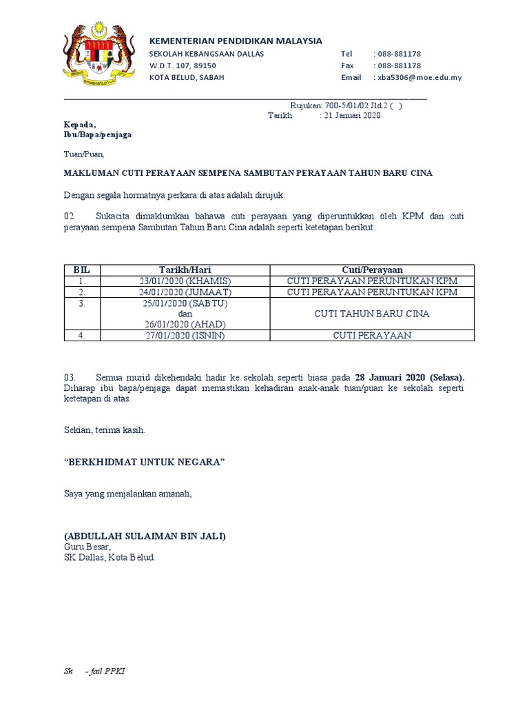 Surat Rasmi Permohonan Cuti Perayaan Surat rasmi permohonan cuti perayaan 2020 surat rasmi permohonan cuti perayaan tahun surat rasmi permohonan cuti perayaan sekolah surat r. 54 Mengekspresikan perasaan apabila dapat bersikap sopan dan berbudi pekerti mulia. Pemberitahuan Cuti Berganti Khas Sekolah.